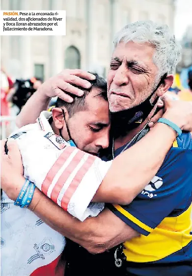 El abrazo en llanto entre un hincha de boca y otro de river, un sentimiento que por un rato cierra la grieta en. La imagen demuestra el legado de diego armando maradona: La pasión que generó diego armando diego maradona en nuestro país fue tan inmensa que permitió ver una postal casi inimaginable: Hinchas de river y boca abrazados y llorando la muerte del más grande de todos los tiempos. El emotivo abrazo entre un hincha de boca y uno de river en el velatorio de maradona.